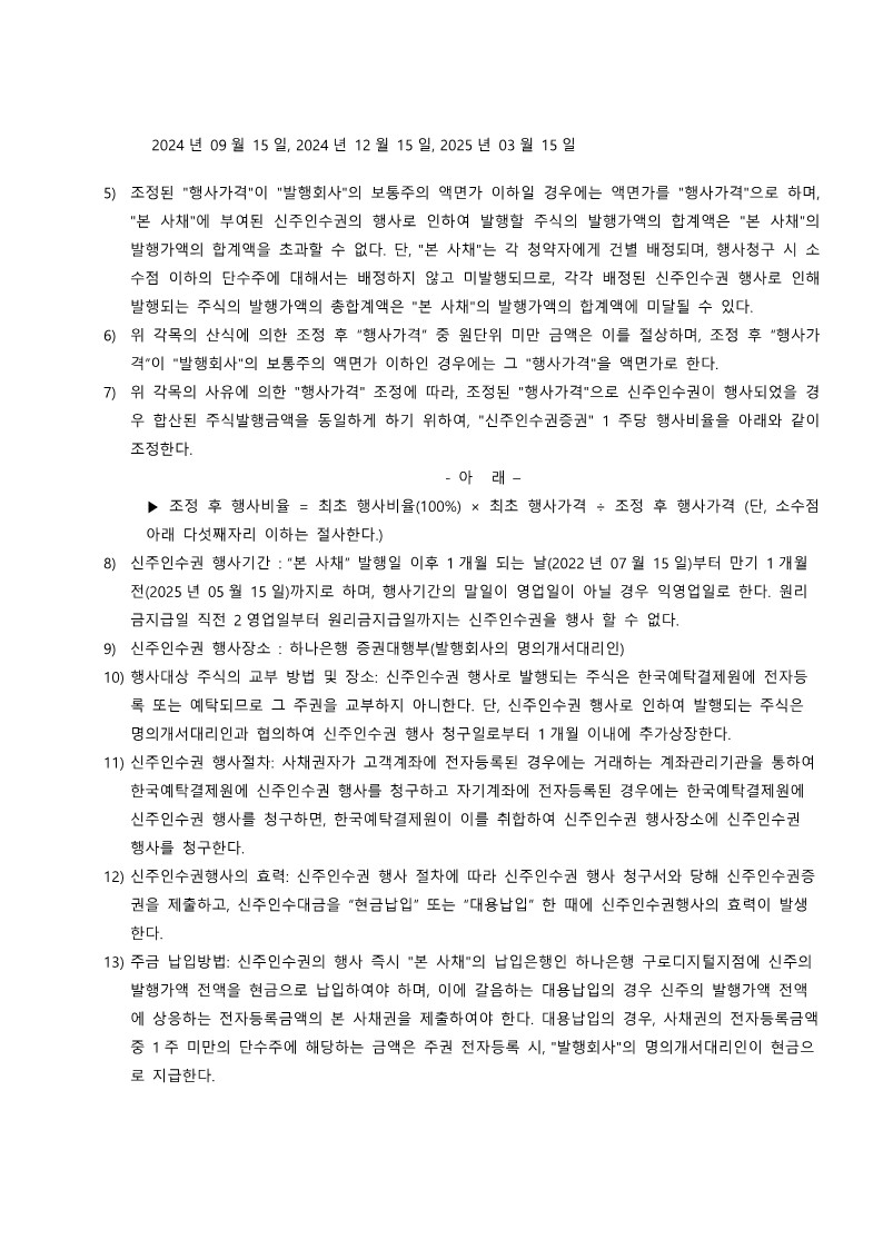[공고] 제 9회 무보증 신주인수권부사채 발행 공고 (주주우선공모)